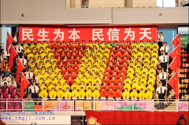 下午3点,“放歌大草原,喜迎十八大”第四届群众合唱节在内蒙古体育馆正式拉开了序幕。主席台上,张铁网局长、刘波书记、吕金华院长正在观看演出。合唱节以“序曲、同心向党、和谐草原、高歌未来”4个篇章组成。计量院代表队的合唱被安排在第一篇章第四个节目,此刻的合唱队员们紧张而又充满自信。