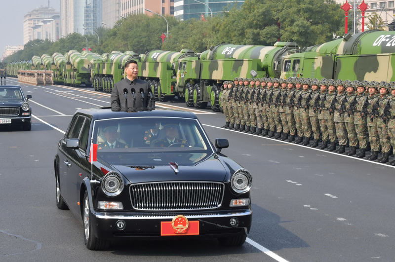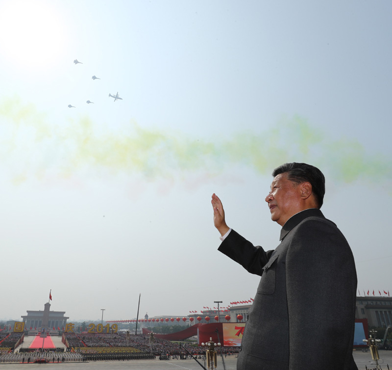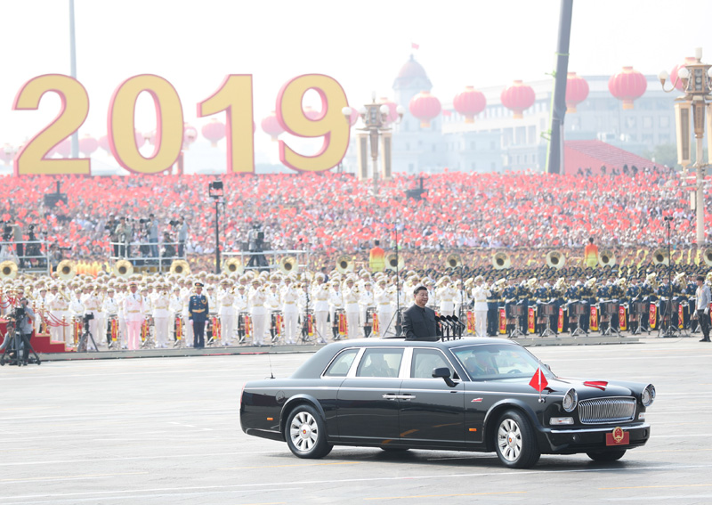 10月1日,庆祝中华人民共和国成立70周年大会在北京天安门广场隆重举行。这是中共中央总书记、国家主席、中央军委主席习近平检阅受阅部队。