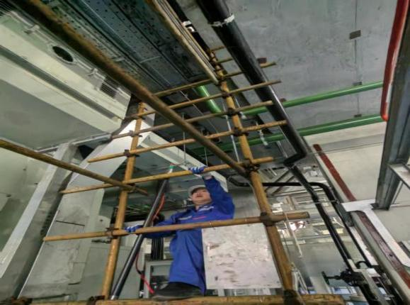 本次检定现场状况非常复杂,需要检定的气体检测报警器安装位置较高,无法通过常规作业完成检定工作。检测人员在征得企业相关人员同意后,佩戴专业装备攀爬脚手架、登高梯,登上报警器安装平面,顺利完成气体检测报警器的检定任务,为企业扫除安全隐患。